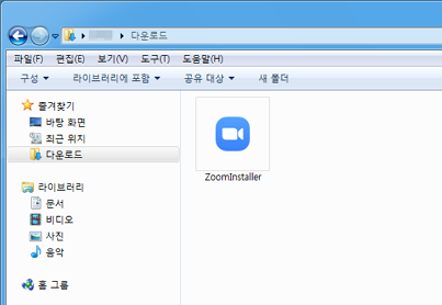 [다운로드] 폴더로 이동하여 ZoomInstaller 파일을 실행하여 설치를 진행할 수 있습니다.