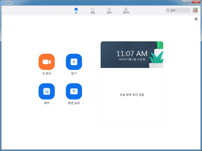 로그인이 완료되면 위 이미지와 같이 새로운 화상회의를 열거나, 기존 회의, 수업에 참여할 수 있으며 화면 공유를 진행할 수 있습니다.